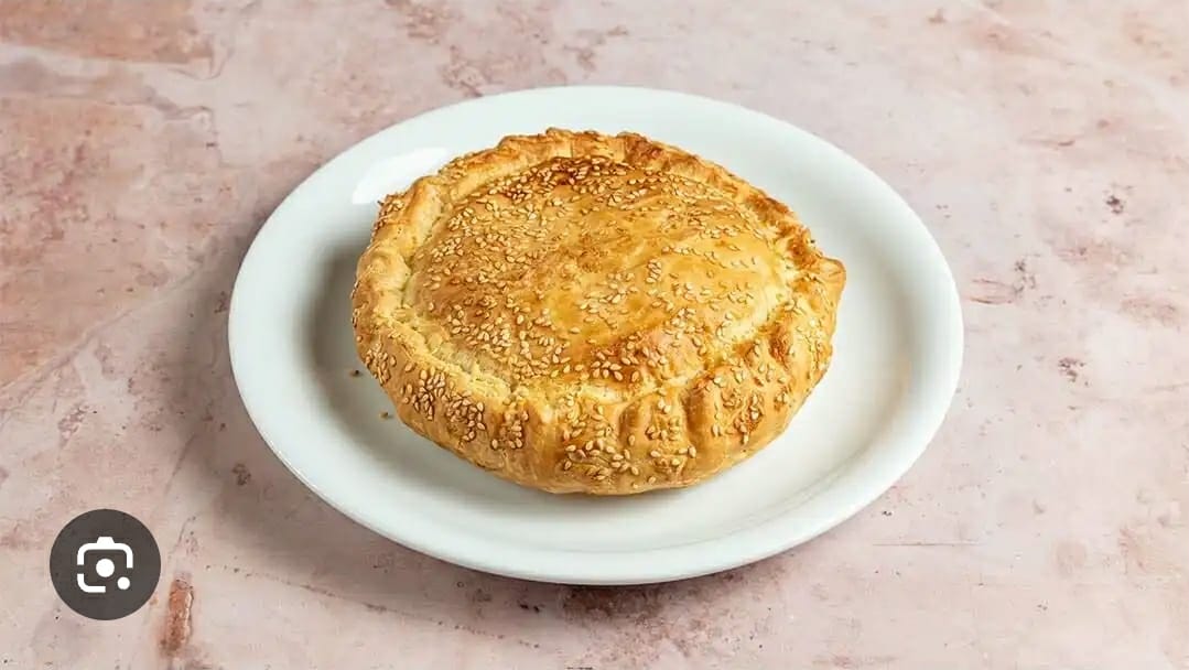 A delicious round pie filled with savoury ham, rich kasseri, and creamy Gouda. The combination of flavours creates a perfectly balanced filling, wrapped in a golden, flaky pastry for a warm and comforting taste in every bite.